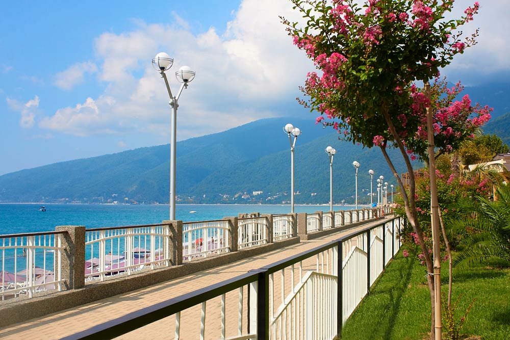 По пути в объект размещения проезжаем старую Гагру, обязательно останавливаемся у Коллонады и символа курорта – легендарного ресторана Гагрипш, построенного зятем царя Николая второго, принцем Ольденбургским.